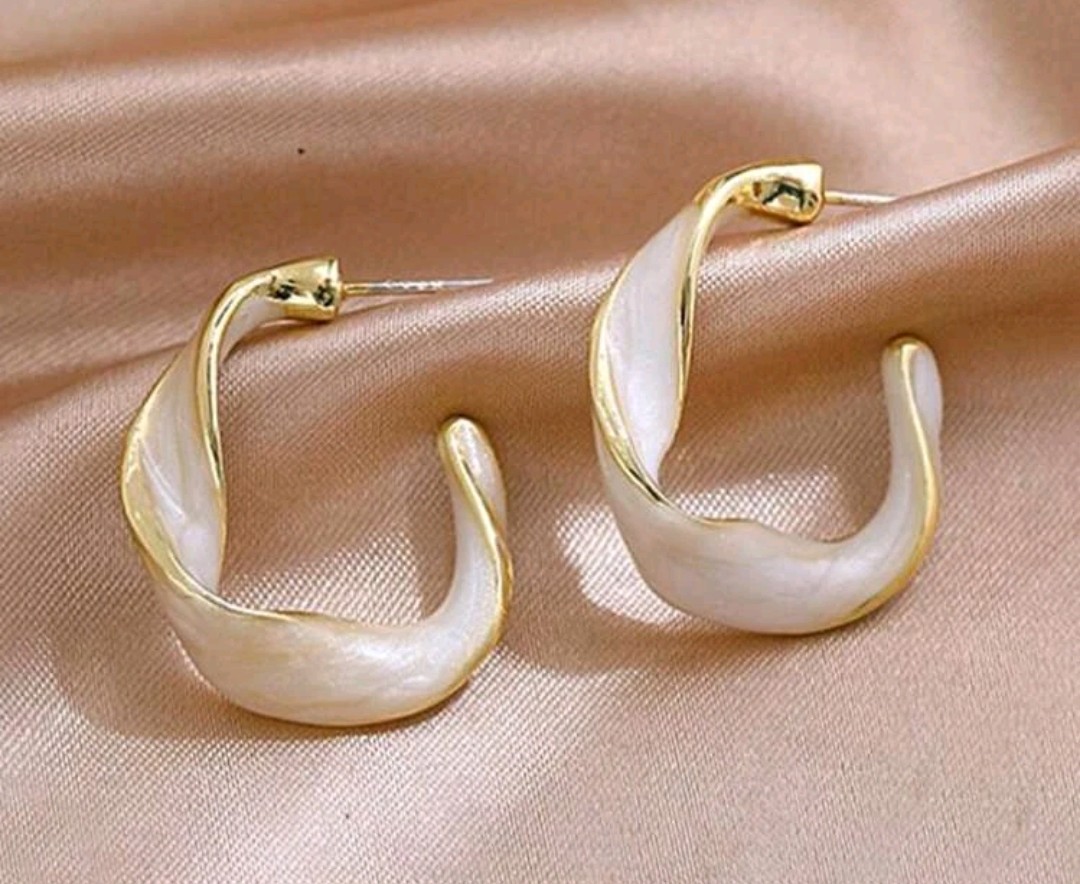 Piękne minimalistyczne kolczyki wykonane z masy perłowej i stali szlachetnej o średnicy 2 cm.