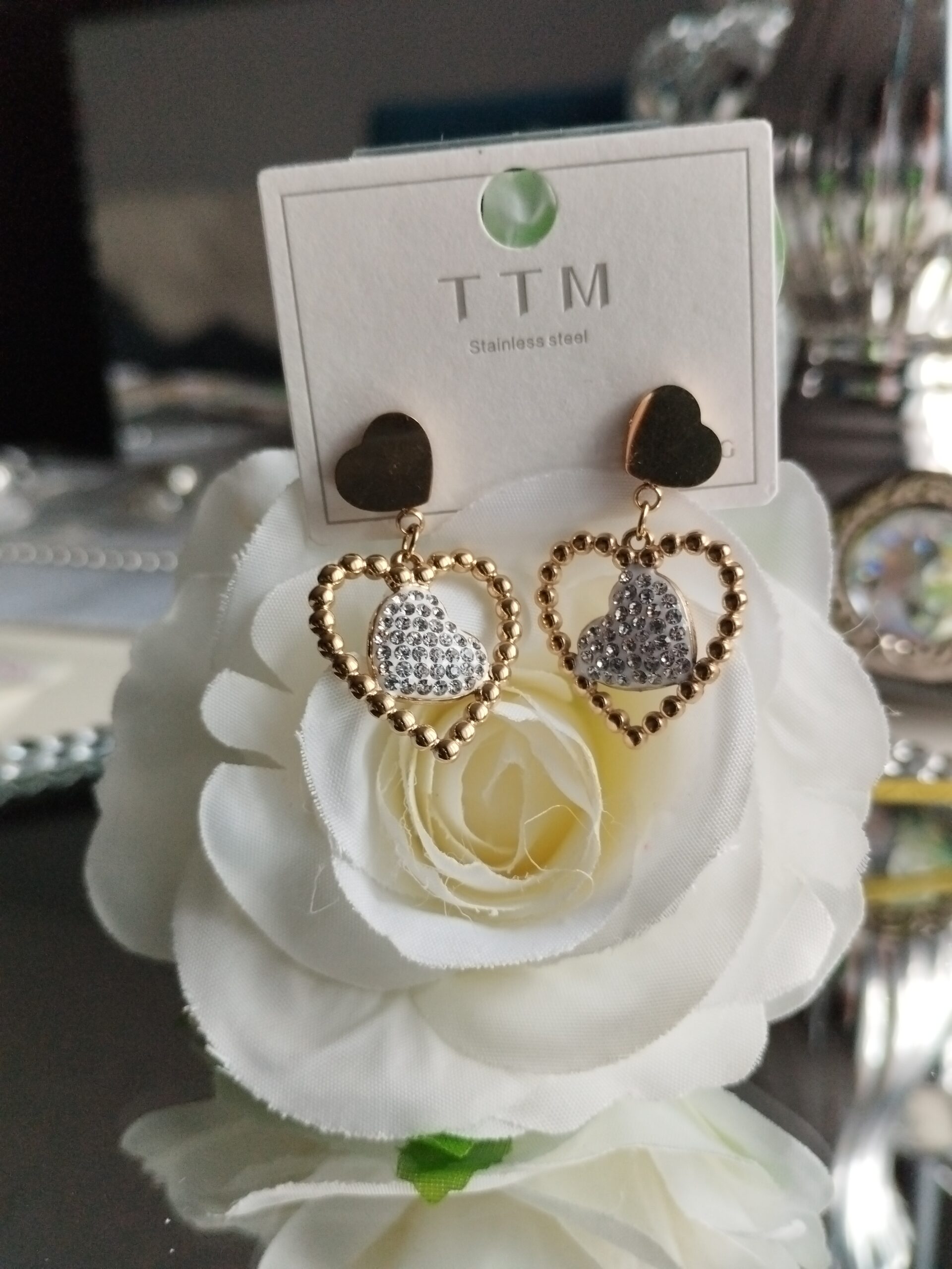 KOLCZYKI CYRKONIOWE SERCA DŁ 3 CM